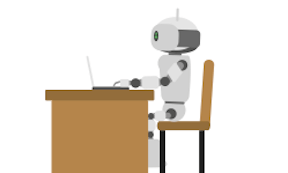 fyi_argument_AI_writing ← Previous Next → Illustration of a robot sitting at a desk with its hand on a laptop keyboard Illustration of a robot sitting at a desk with its hand on a laptop keyboard